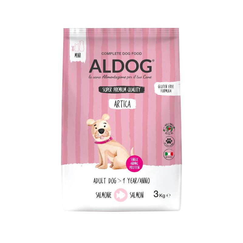Le crocchette per cani Aldog Artica al Salmone sono un alimento completo monoproteico formulato con il salmone come unica fonte di proteina e grasso animale. Contengono prebiotici FOS che contribuiscono al miglior equilibrio della flora intestinale e Acidi grassi Omega 3 e Omega 6 che favoriscono un mantello lucido e brillante. L’utilizzo del riso come cereale privo di glutine, prima fioccato e poi estruso rende l’alimento altamente digeribile.