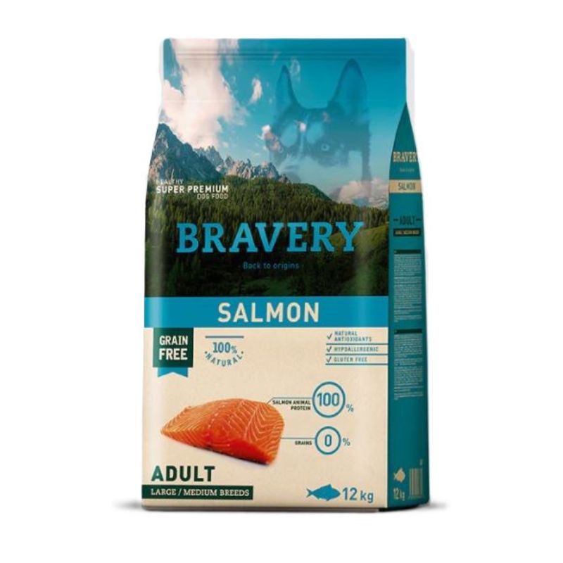 Bravery Dog Adult Salmon Medium/Large è un alimento secco completo Super Premium, specificamente formulato per cani adulti di taglia media e grande. La forza del prodotto Bravery risiede nella sua formulazione Grain Free, tramite la scelta di ingredienti di qualità volti ad offrire una soluzione ideale Ipoallergenica per il mantenimento del cane, risultando adatto anche a cani con sensibilità o allergie.