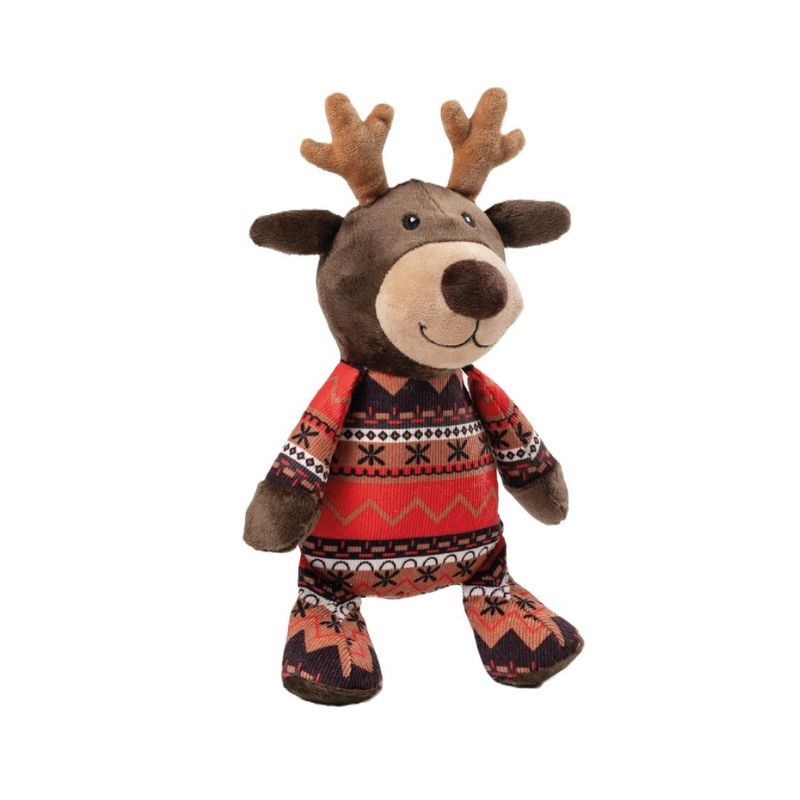 Realizzato in morbido peluche, questo gioco a tema natalizio è perfetto per offrire ore ed ore di svago al tuo cane; la sua forma di renna dona un tocco caratteristico facilitando l’immersione nel periodo festivo. Resistente a morsi e strattoni, al suo interno è presente uno squeaker che si attiva con il morso, offrendo un elemento aggiuntivo all’esperienza sensoriale e contribuendo a stimolare l’istinto predatorio del cane.