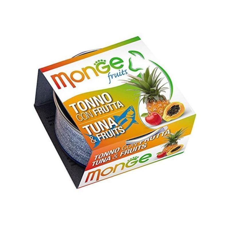 Tonnetto striato (Katsuwonus pelamis) 55%, Frutta (Ananas, Mela, Papaya) 6%, Riso, F.O.S. (Frutto-oligosaccaridi) 0,04%.
