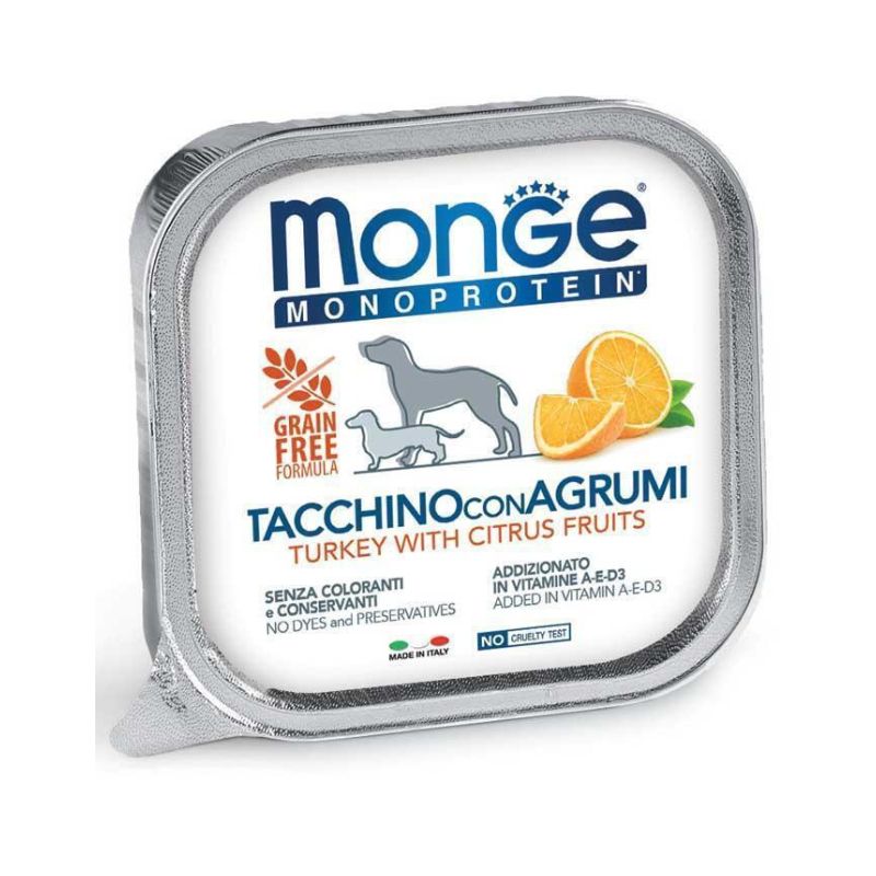 Realizzato con pregiata carne di tacchino, fonte di proteine nobili, e arricchito con frutta e agrumi, per un’integrazione naturale ottimale di vitamine e minerali essenziali. La formula, priva di cereali, è delicata sullo stomaco e facilmente digeribile, rendendola adatta anche ai cani più sensibili. La texture morbida e il sapore irresistibile fanno di questo paté un piacere per il palato del tuo amico a quattro zampe.