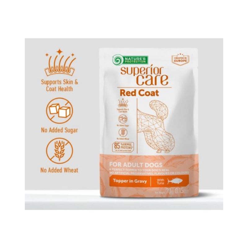 Questo alimento è formulato specificamente per cani dal pelo rosso e marrone, aiutando a mantenere la brillantezza del manto grazie a ingredienti di alta qualità come il Tonno, fonte principale di proteine, ricchissimo in acidi grassi Omega-3 per la salute di pelle e pelo. Inoltre, è altamente digeribile e favorisce l’idratazione grazie all’elevato contenuto di acqua, supportando la digestione del tuo cane.