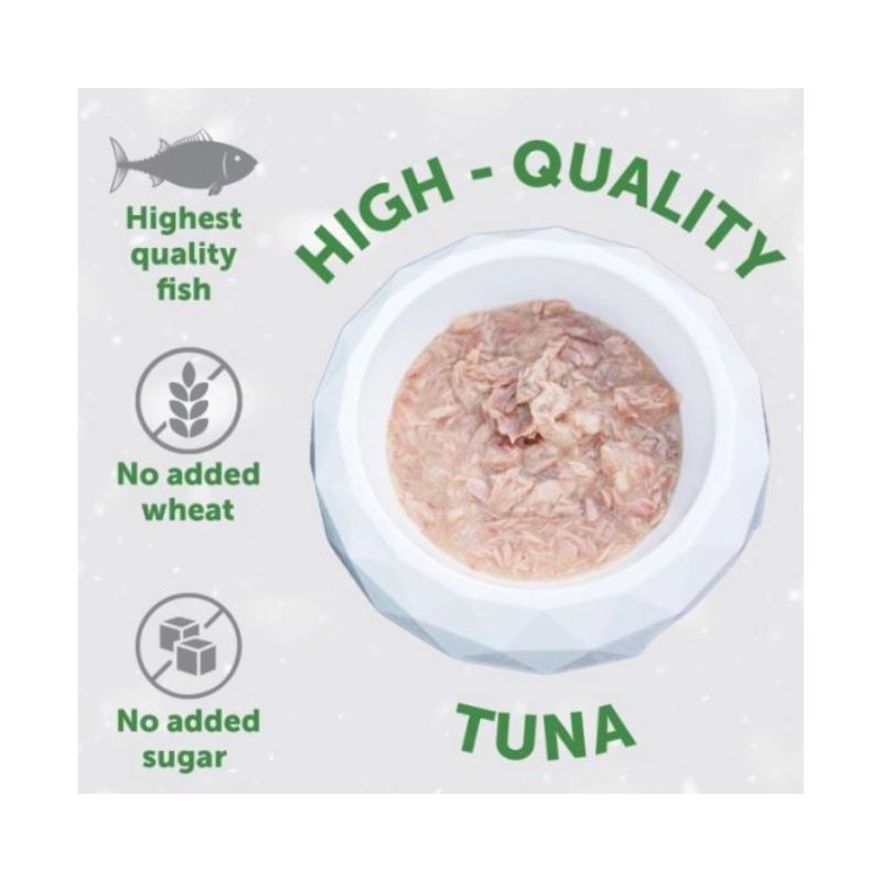 Carne di tonno 50%, Riso 2%, Estratto di tonno.