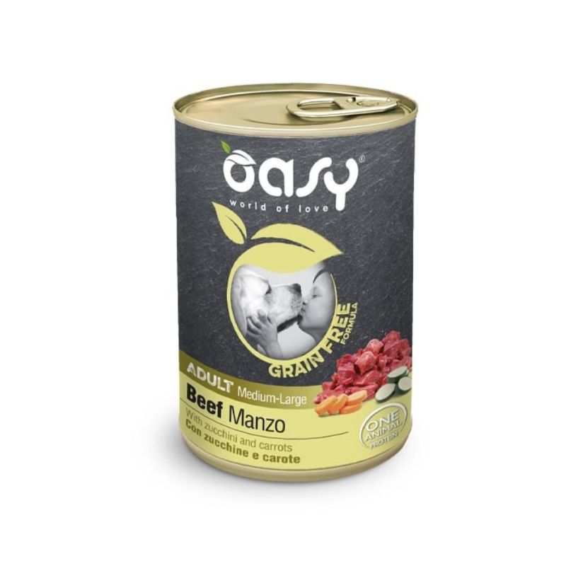 Un alimento umido composto da carne di manzo, ricca di proteine di alto valore biologico, contenente vitamine e minerali indispensabili, tra cui ferro e vitamine appartenenti al gruppo B, come la B6 e B12; tutti nutrienti fondamentali per il benessere psico-fisico dell’animale. Arricchito da zucchine e carote, verdure importanti per l’effetto benefico che hanno sulla qualità del pelo e cute, oltre che a facilitare il processo digestivo. Grazie alla combinazione di questi elementi naturali, questo pasto riuscirà a soddisfare anche il palato più esigente.