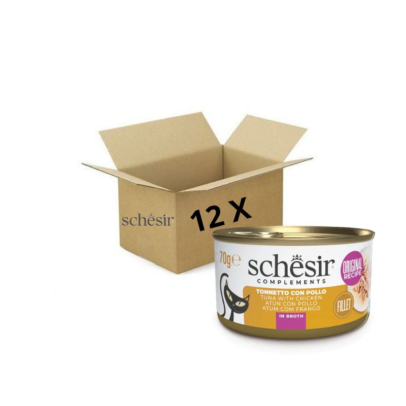 Schesir Cat Complements si basa su ingredienti 100% naturali, impiegando filetti di tonno e pollo, per un apporto proteico di qualità; cotti al vapore e lavorati a mano, garantiscono la massima conservazione del valore nutrizionale degli ingredienti, mentre l’aggiunta del suo brodo di cottura lo rende ideale come fonte di idratazione per gatti che bevono poco.
