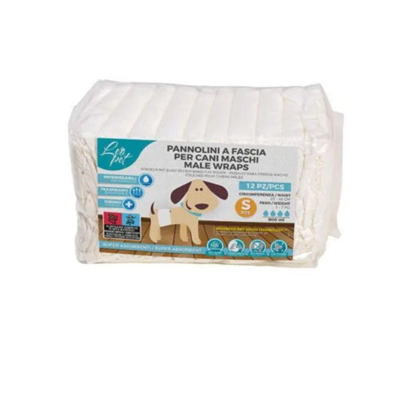 I pannolini a fascia Leopet S 12 pezzi sono delle fasce igieniche specificatamente pensate per cani con incontinenza e create anche per inibire l’istinto dell’animale di marcare il territorio con strati traspiranti e bordi a prova di perdite. Utili inoltre per assorbire piccole perdite in seguito a interventi chirurgici o durante il recupero per alcune terapie. Offrono tranquillità durante lunghi viaggi o situazioni in cui il cane non può uscire regolarmente. Presentano delle linguette di fissaggio riposizionabili, resistenti al pelo dell’animale. Hanno un nucleo assorbente a tenuta stagna e una vestibilità comoda e sicura. Infine l’advanced dry speed technology converte istantaneamente l’urina in gel bloccando l’umidità e neutralizzando gli odori.