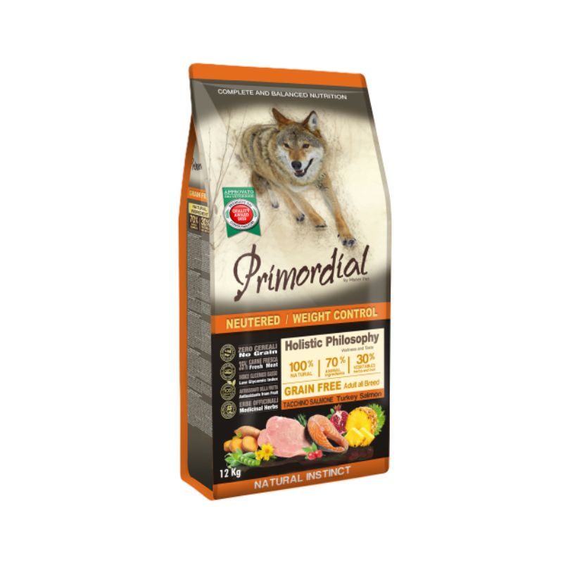 Tacchino fresco (35%), Farina di salmone disidratato (14%), Piselli, Patate dolci, Proteine di pollo disidratate (11%), Grasso di tacchino e pollo (8%), Favino, Polpa di barbabietola essiccata, Proteine di fegato idrolizzate (2%), Semi di lino (2%), Lievito di birra, Farina di alghe marine (0,3%), Polpa di cicoria essiccata, Sali minerali, Prodotti dei lieviti(Mos 0,2%), Yucca schidigera (0,03%), Semi di cardo mariano (0,02%), Gambo d’ananas disidratato (0,02%), Buccia di melograno disidratata (0,02%), Rosa canina frutto disidratato (0,002%), Glucosamina, Solfato di condroitina, Rosmarino.