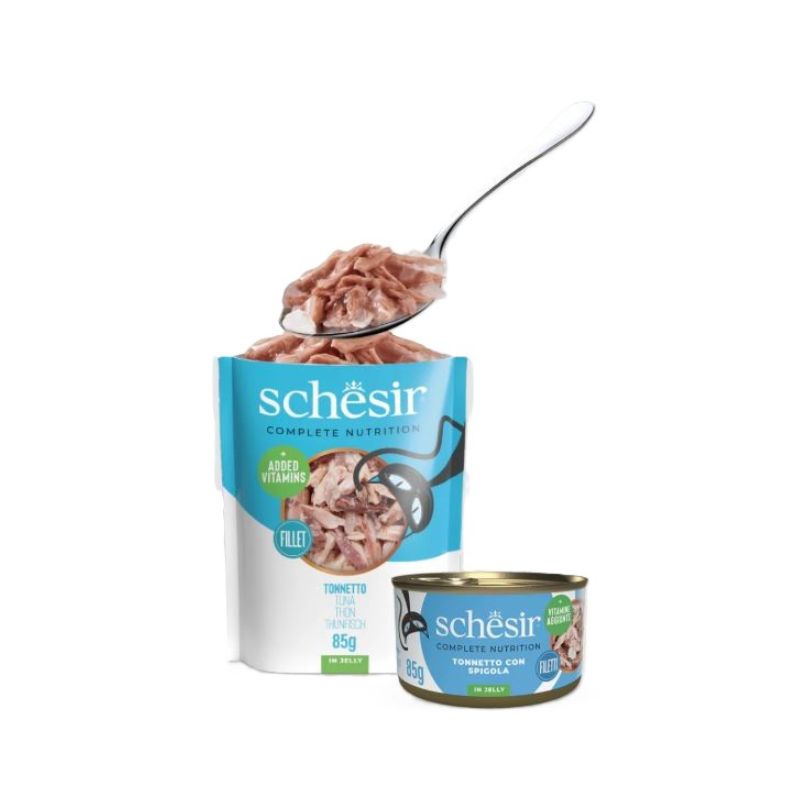 Schesir Cat Complete Nutrition è formulato per essere un alimento completo e bilanciato; la sua ricetta si basa su ingredienti 100% naturali, impiegando filetti di tonno e gamberetti, per un apporto proteico di qualità; cotti al vapore e lavorati a mano, garantiscono la massima conservazione del valore nutrizionale degli ingredienti.