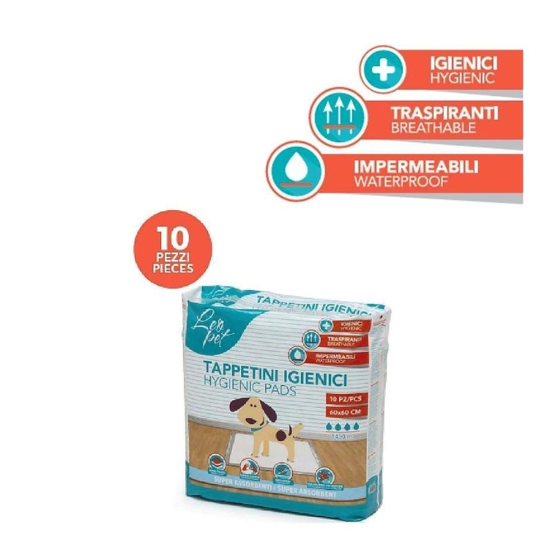 I tappetini igienici Leopet si distinguono per la loro elevata assorbenza, dotata di tecnologia polimerica avanzata che gelifica i liquidi, bloccando umidità, odori e garantendo una superficie asciutta e pulita, tramite la sua struttura multistrato resistente agli strappi. La loro natura monouso ne facilita la pulizia, risultando ideali per cuccioli in fase di addestramento, cani anziani o incontinenti, e per l’utilizzo in cucce e trasportini.